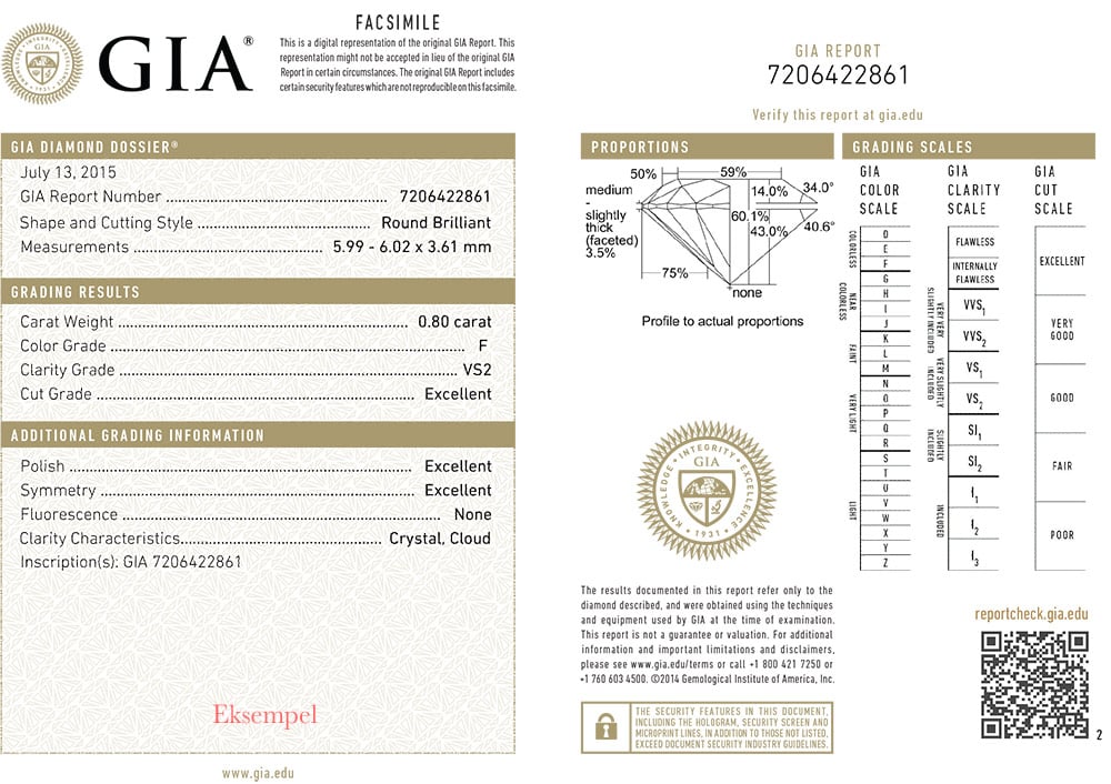 - Verdens mest anerkjente diamantsertifikat fra GIA for diamanter over 0,25ct