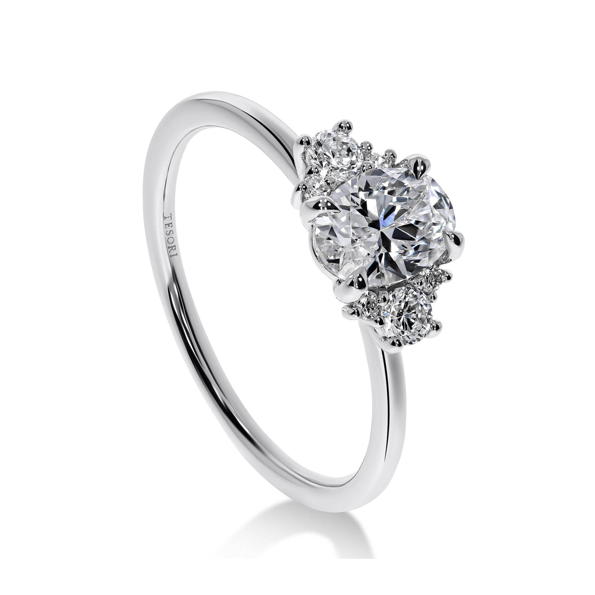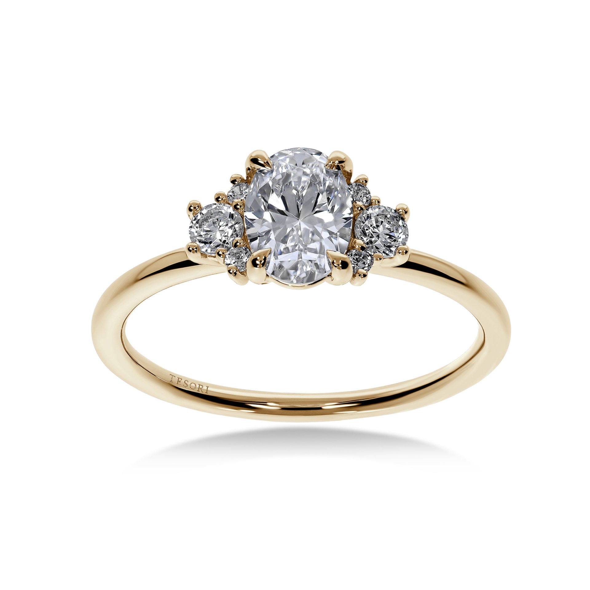 En perfekt slipt oval GIA-sertifisert diamant på 0,50ct TW(F)/VS2 og sidediamanter på 0,18ct TW/VS