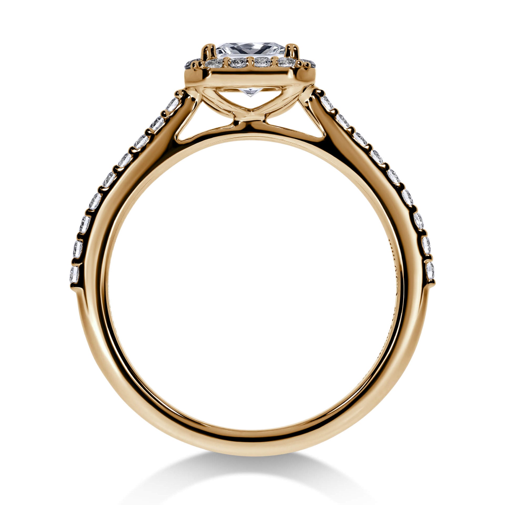 En GIA-sertifisert prinsesseslipt diamant på 0,70ct med 0,36ct skinnende briljantslipte diamanter på siden av ringen – Tilsammen 1,06 carat