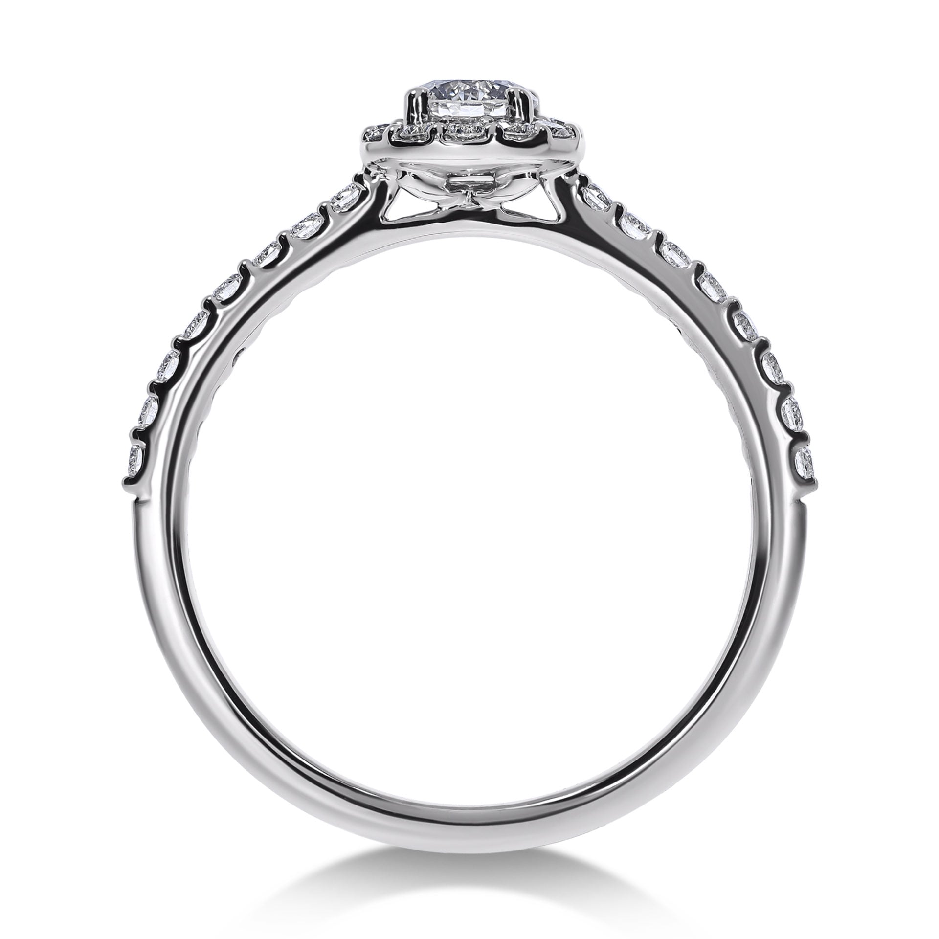 En GIA-sertifisert rund briljant diamant på 0,40ct med 0,30ct skinnende briljantslipte diamanter på siden av ringen – Tilsammen 0,70 carat TW(F)/VS.