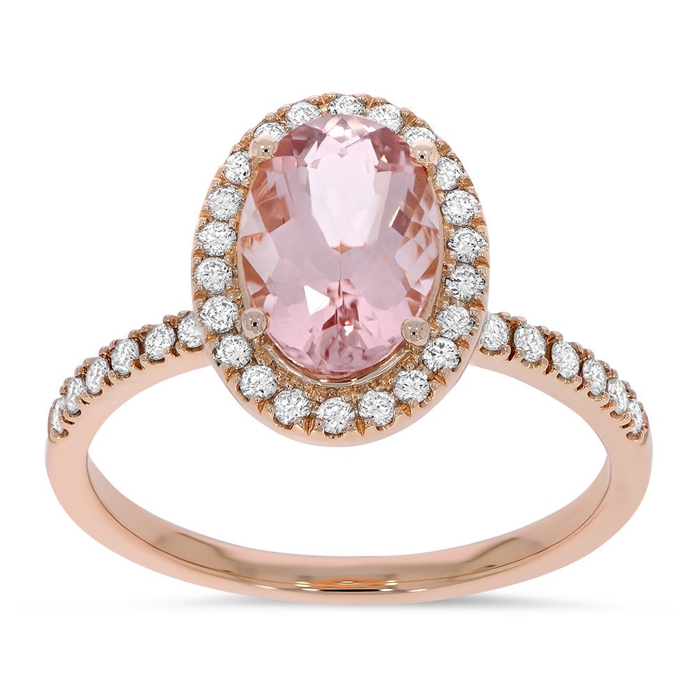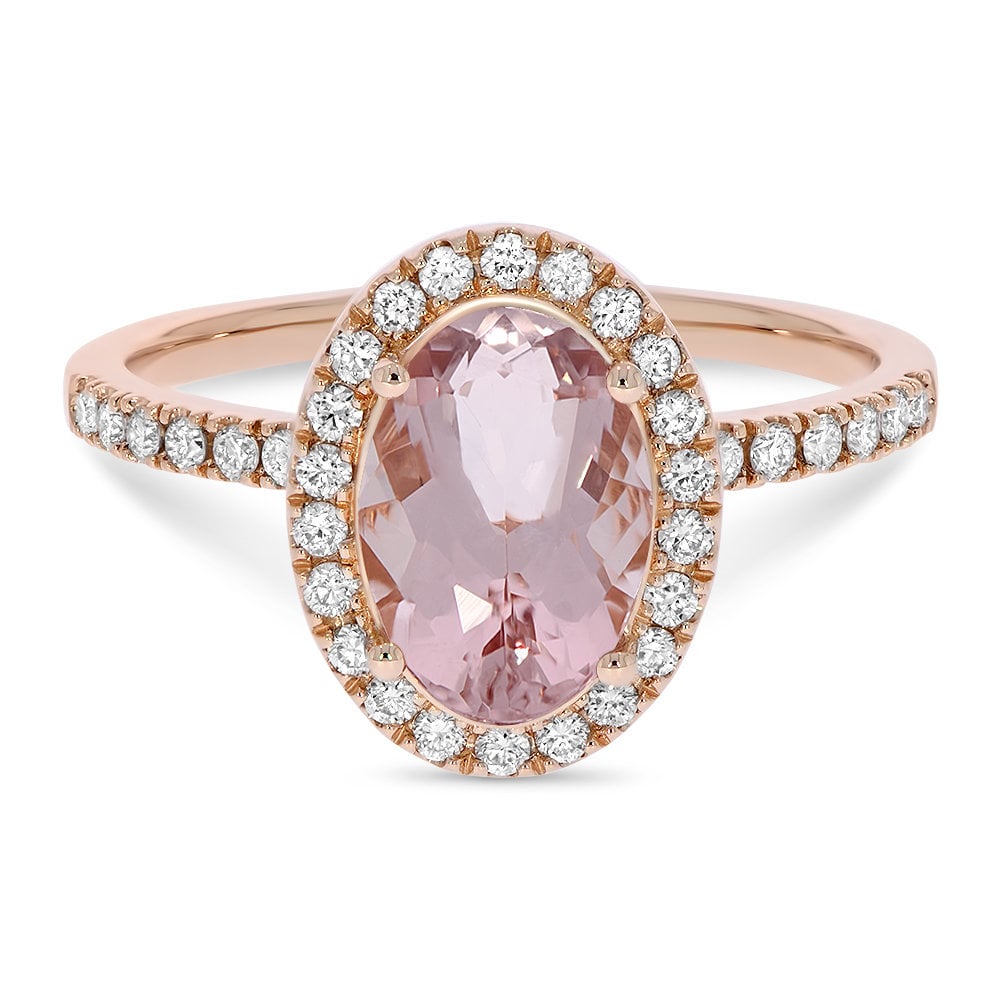 En vakker rosettring med en rosa morganitt på 1,70 carat og TW(F)/VS diamanter på tilsammen 0,34ct