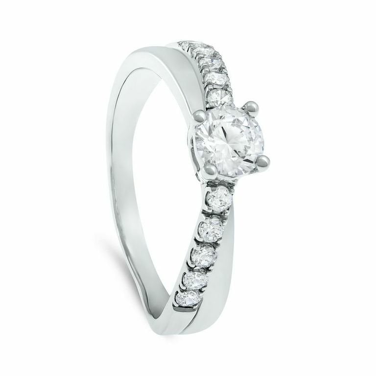 En perfekt slipt GIA-sertifisert diamant på 0,50ct TW(F)/VS omkranset av skinnende diamanter på 0,25ct.